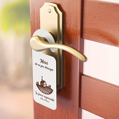 Communiquez efficacement avec vos clients grâce à nos accroche-portes professionnels. Idéals pour les hôtels, chambres d’hôtes, spas ou centres de bien-être, ces supports discrets et élégants permettent de transmettre vos messages (ne pas déranger, chambre à faire, promotions...) avec clarté et style.