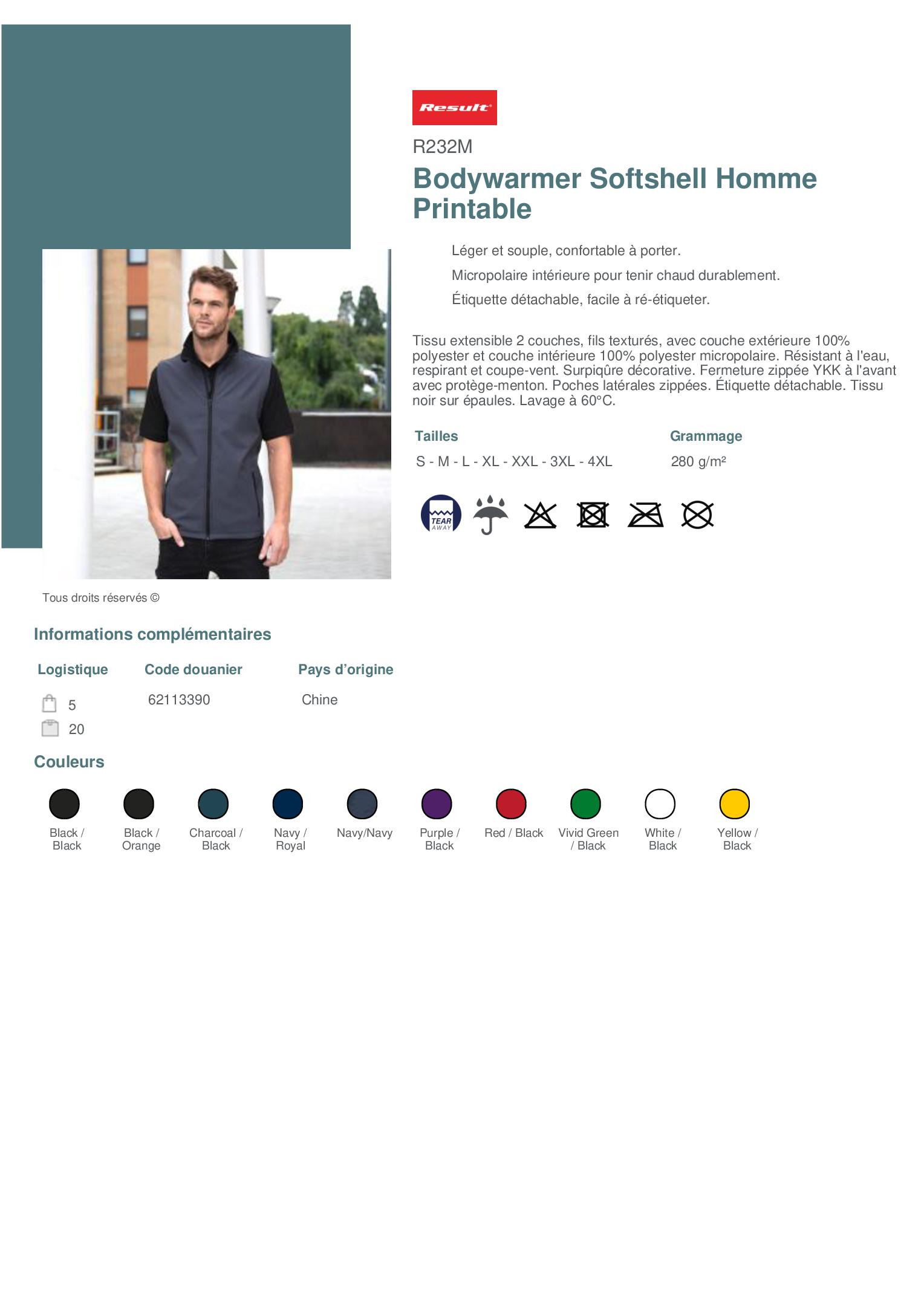 Conçue pour offrir un confort optimal tout en maintenant la chaleur, cette veste sans manches softshell est dotée d’un intérieur en micropolaire douce qui assure une isolation thermique durable sans ajouter de poids inutile. Sa coupe ergonomique et son tissu souple garantissent une grande liberté de mouvement. Parfaite pour la mi-saison ou comme couche intermédiaire, cette softshell est également équipée d’une étiquette détachable, idéale pour le marquage ou la personnalisation textile.