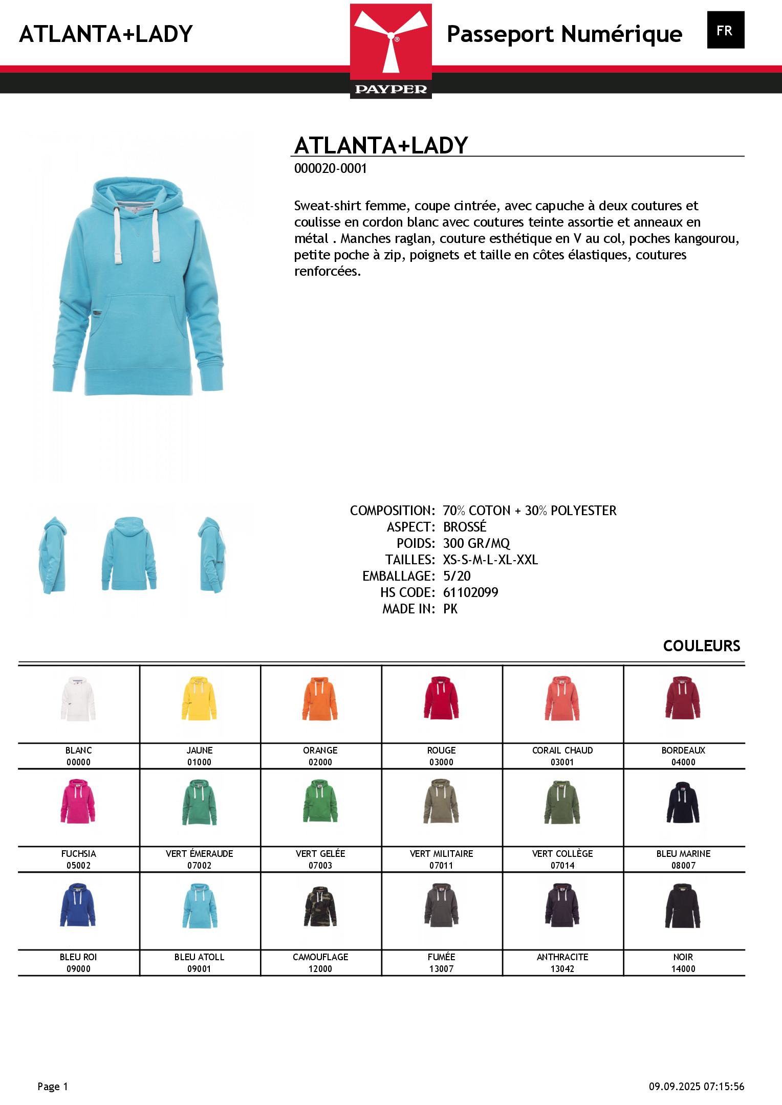 Sweat-shirt femme, coupe cintrée, avec capuche à deux coutures et coulisse en cordon blanc avec coutures teinte assortie et anneaux en métal . Manches raglan, couture esthétique en V au col, poches kangourou, petite poche à zip, poignets et taille en côtes élastiques, coutures renforcées.