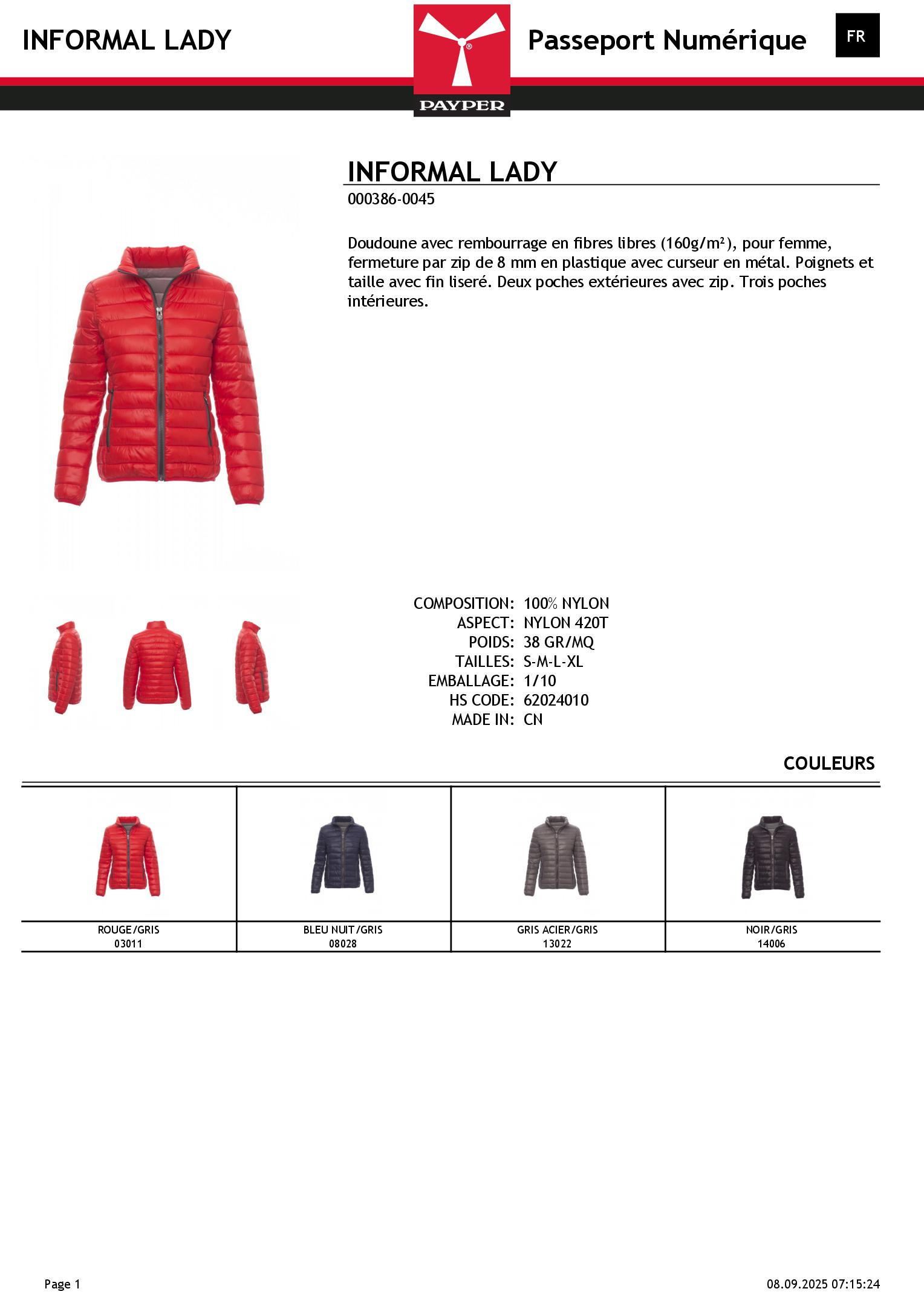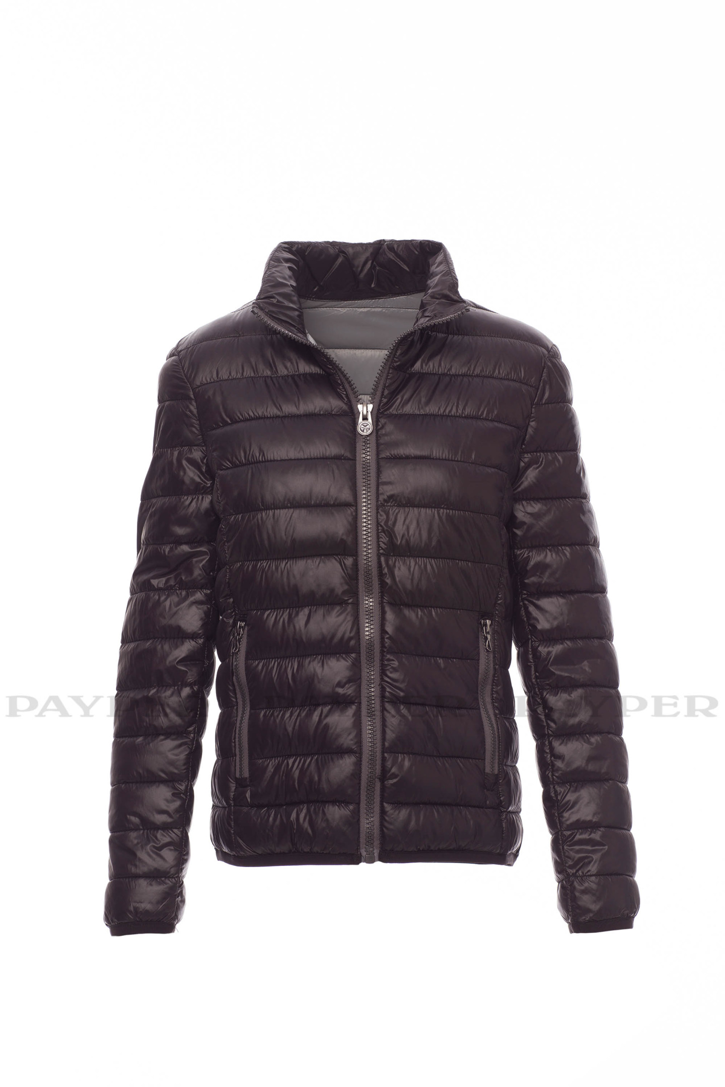 Doudoune femme coupe ergonomique, zip de 8 mm en plastique avec curseur en métal, fin liseré aux poignets et à la taille, deux poches extérieures. Intérieur : rembourré polyester effet duvet, trois poches.