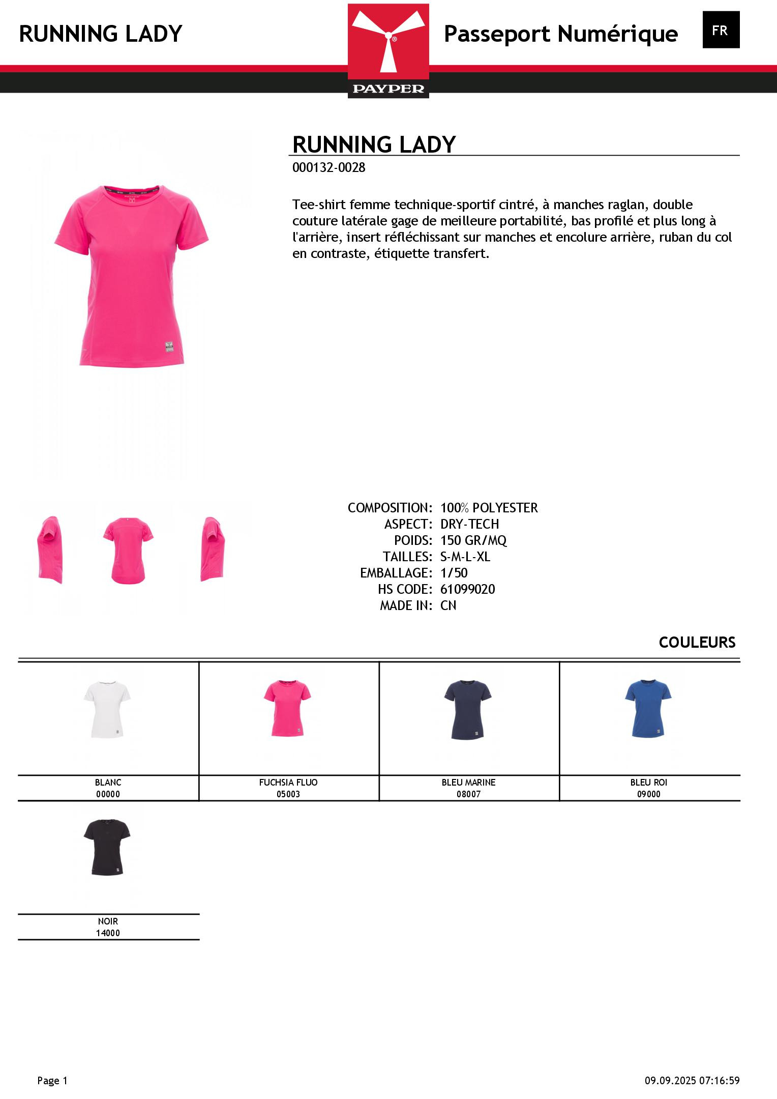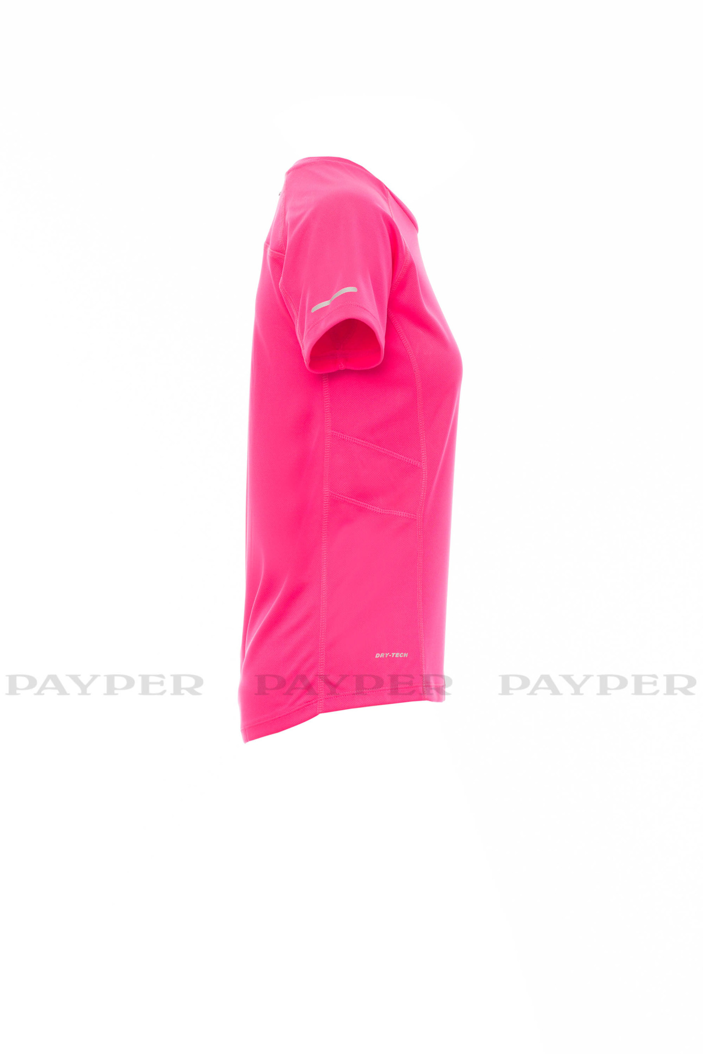 Tee-shirt femme technique-sportif cintré, à manches raglan, double couture latérale gage de meilleure portabilité, bas profilé et plus long à l'arrière, insert réfléchissant sur manches et encolure arrière, ruban du col en contraste, étiquette transfert.