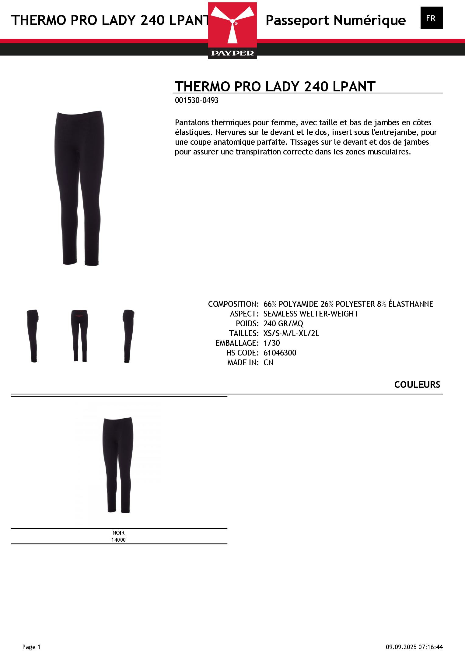 Pantalons thermiques pour femme, avec taille et bas de jambes en côtes élastiques. Nervures sur le devant et le dos, insert sous l'entrejambe, pour une coupe anatomique parfaite. Tissages sur le devant et dos de jambes pour assurer une transpiration correcte dans les zones musculaires.