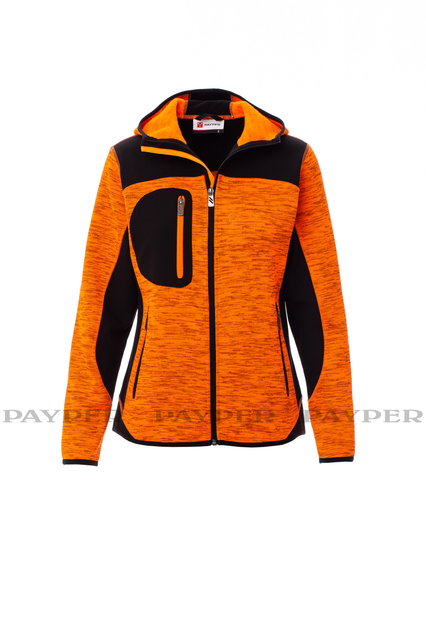 Tricot technique avec inserts en soft-shell noirs, bicolore, zip long SBS avec ruban, capuche profilée avec deux coutures, fin liseré aux poignets et à la taille, deux poches latérales avec zip, une poche poitrine.