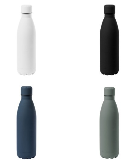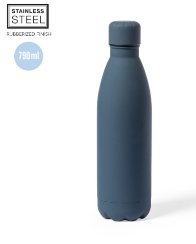Capacité de 790 ml, fabriqué en acier inoxydable et fini avec un toucher en caoutchouc, spécialement conçu pour le marquage laser. Avec bouchon à vis assorti, sans BPA et disponible dans une large gamme de couleurs mates. Présenté dans une boîte individuelle au design kraft.