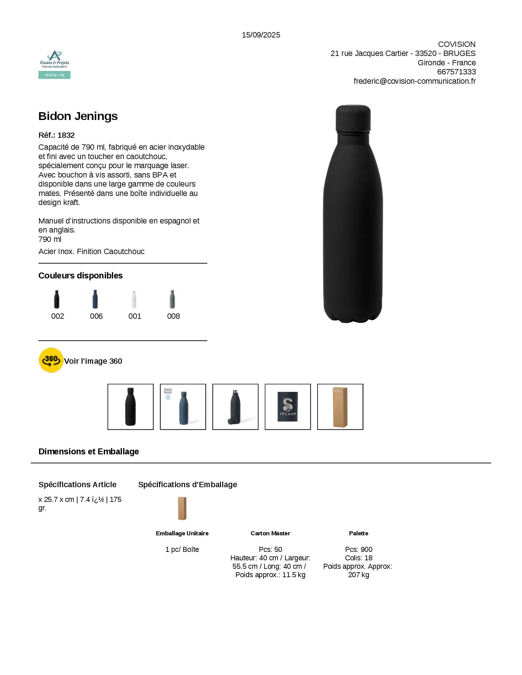 Couleurs à définir selon nuancierMarquagePersonnalisation graphiqueCommentaires