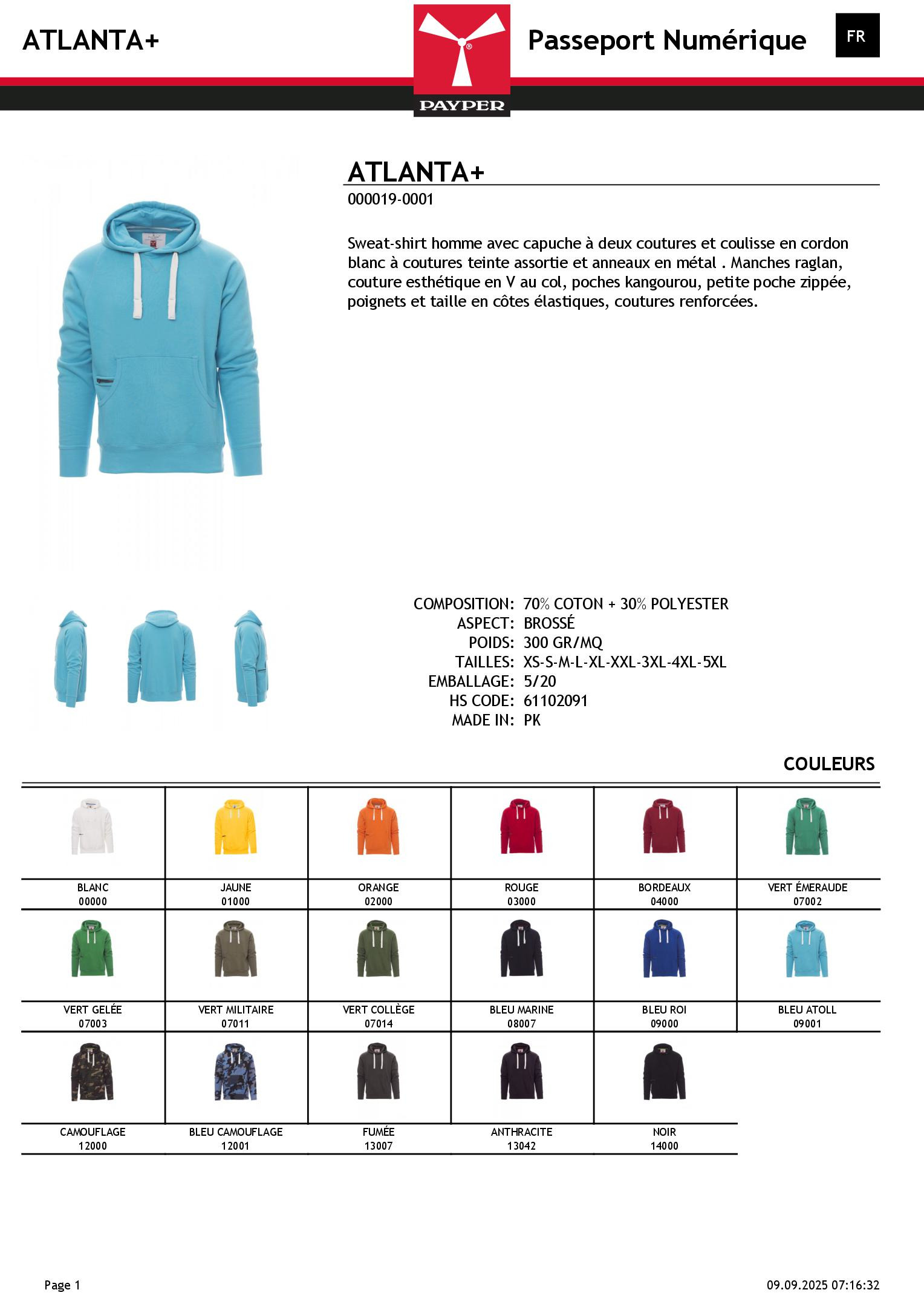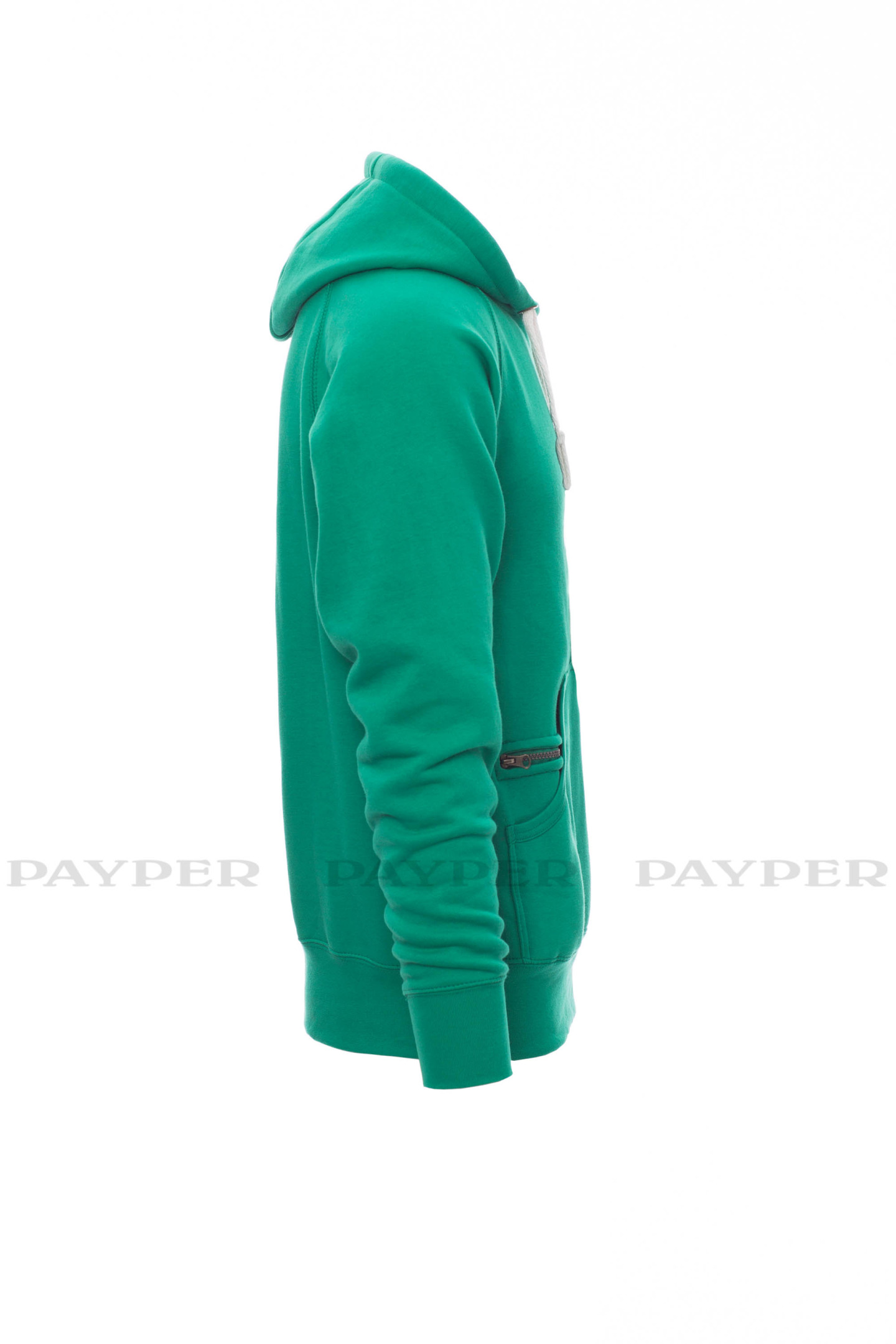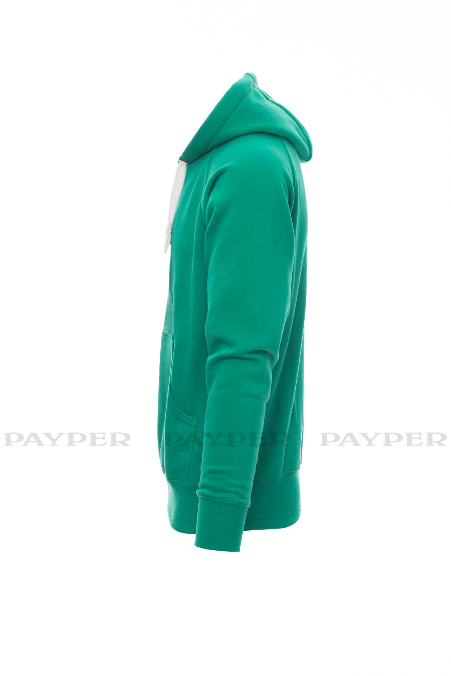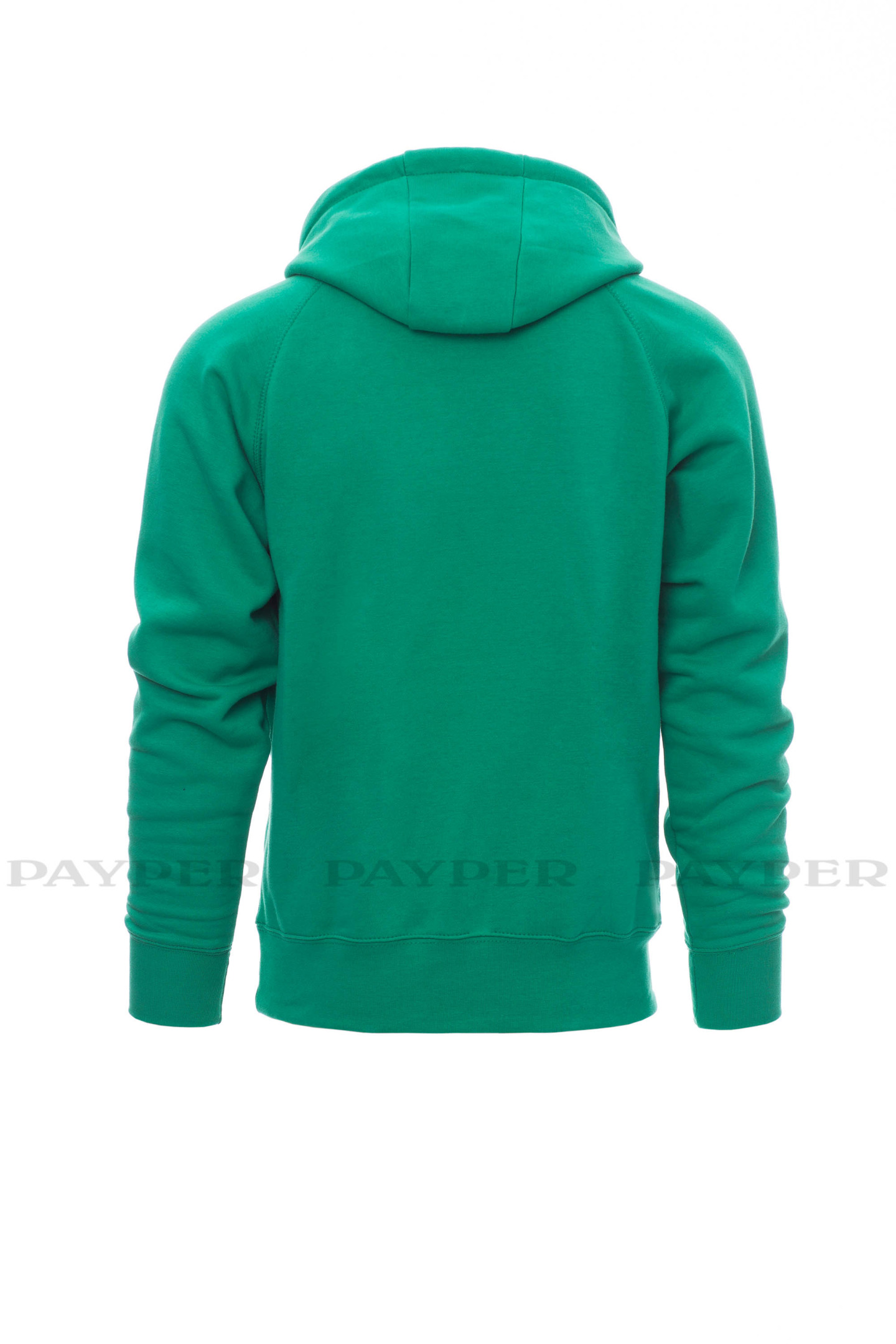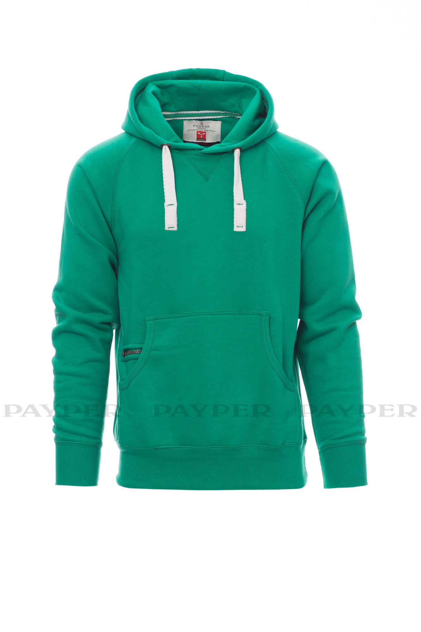 Sweat-shirt homme avec capuche à deux coutures et coulisse en cordon blanc à coutures teinte assortie et anneaux en métal . Manches raglan, couture esthétique en V au col, poches kangourou, petite poche zippée, poignets et taille en côtes élastiques, coutures renforcées.