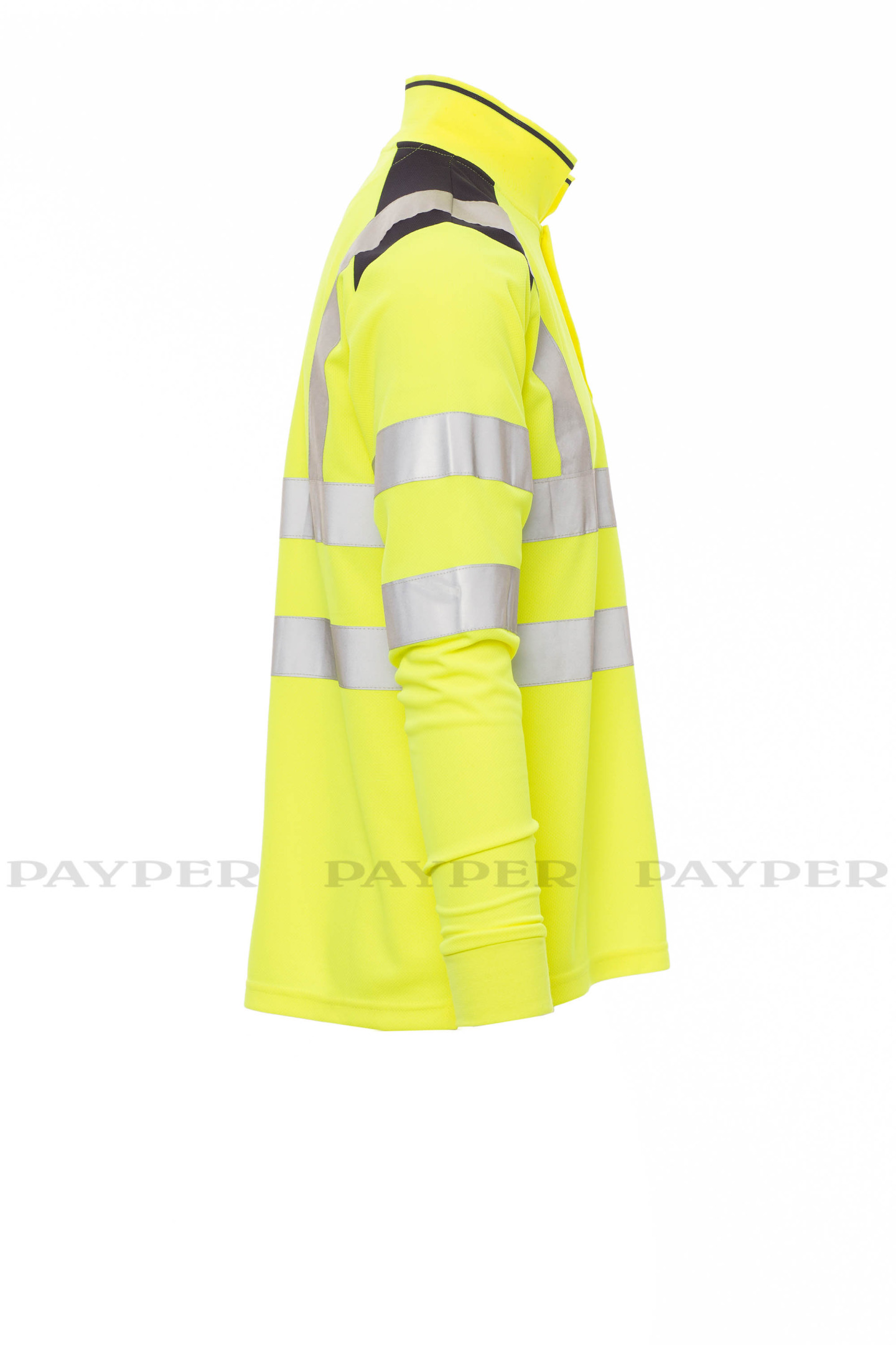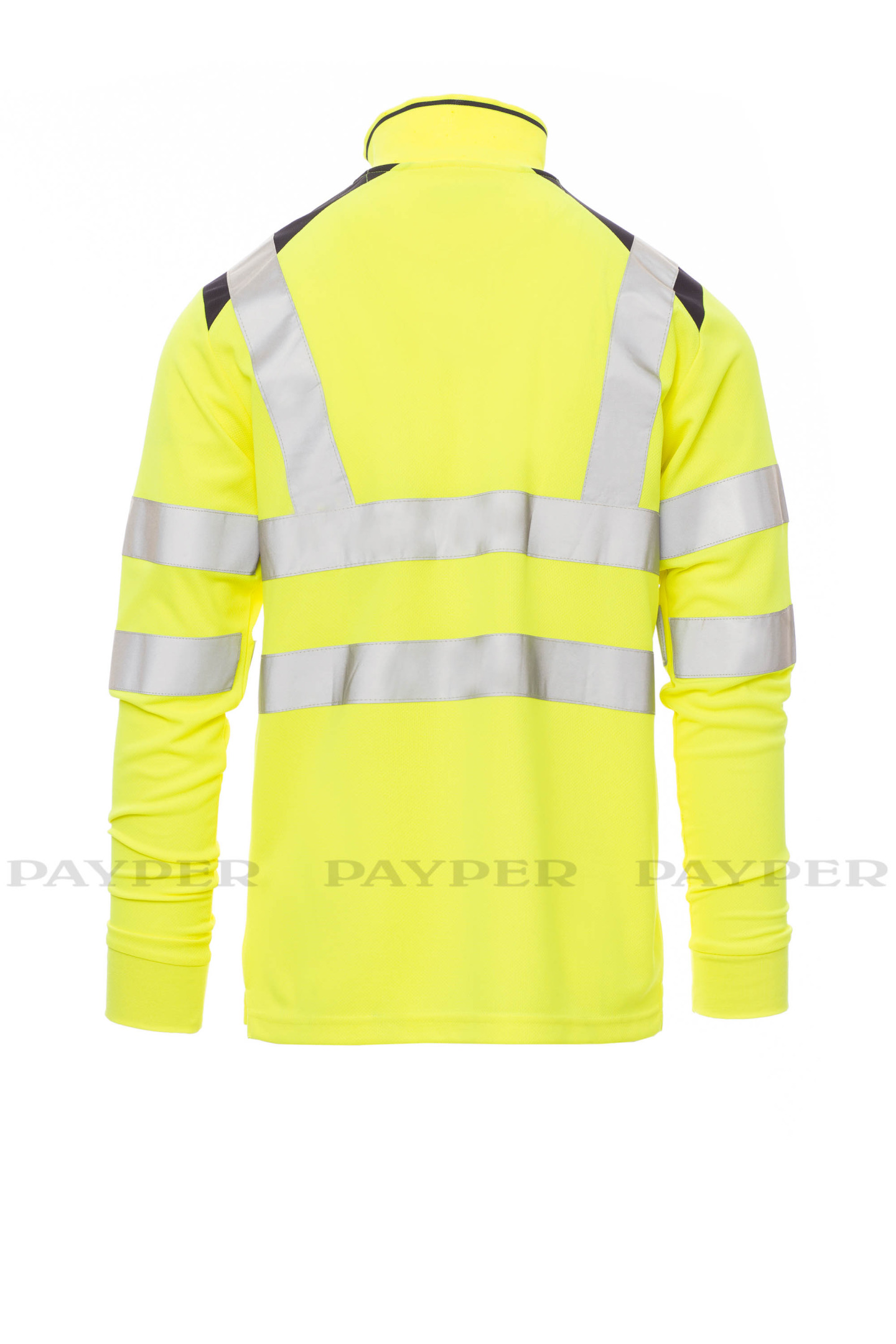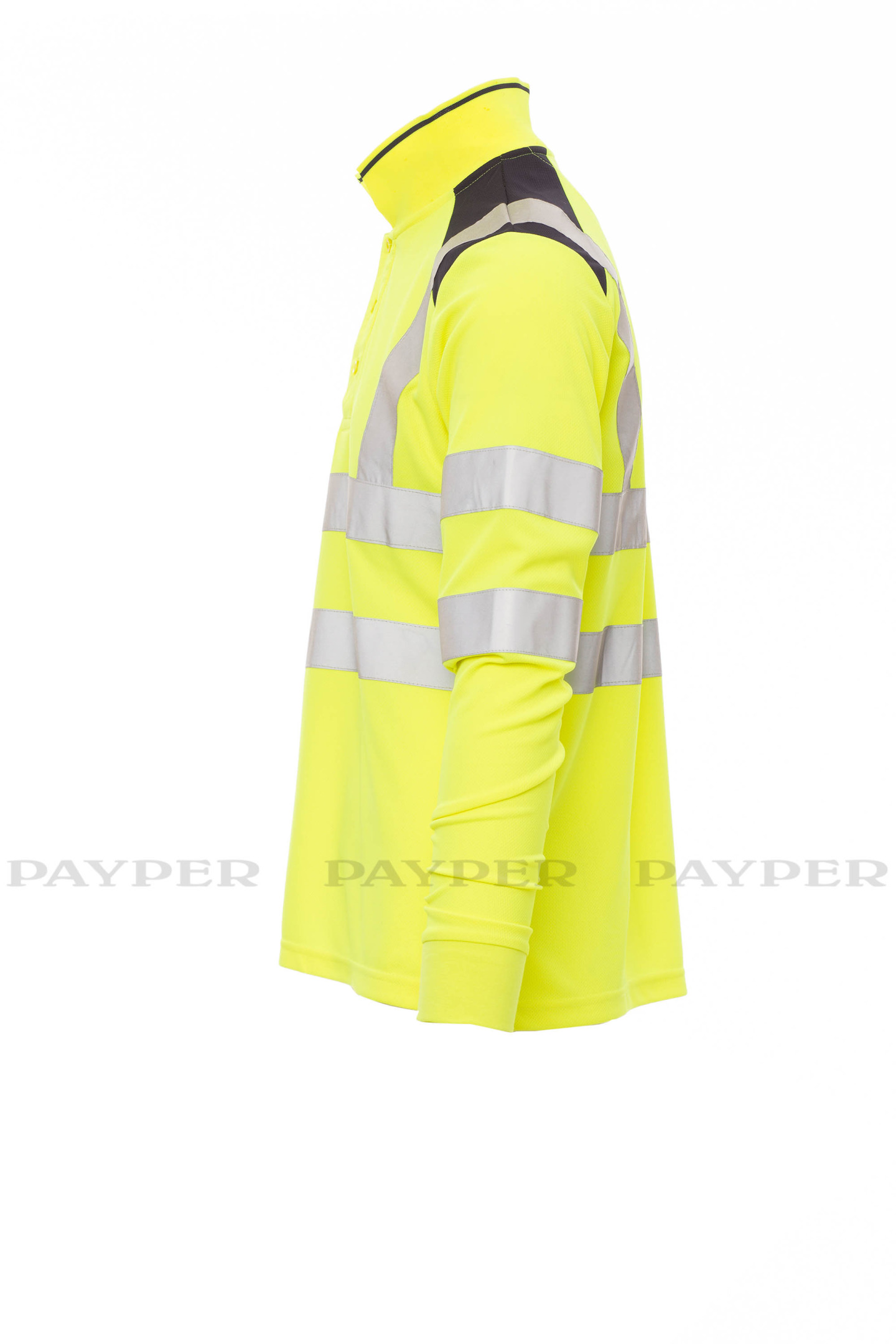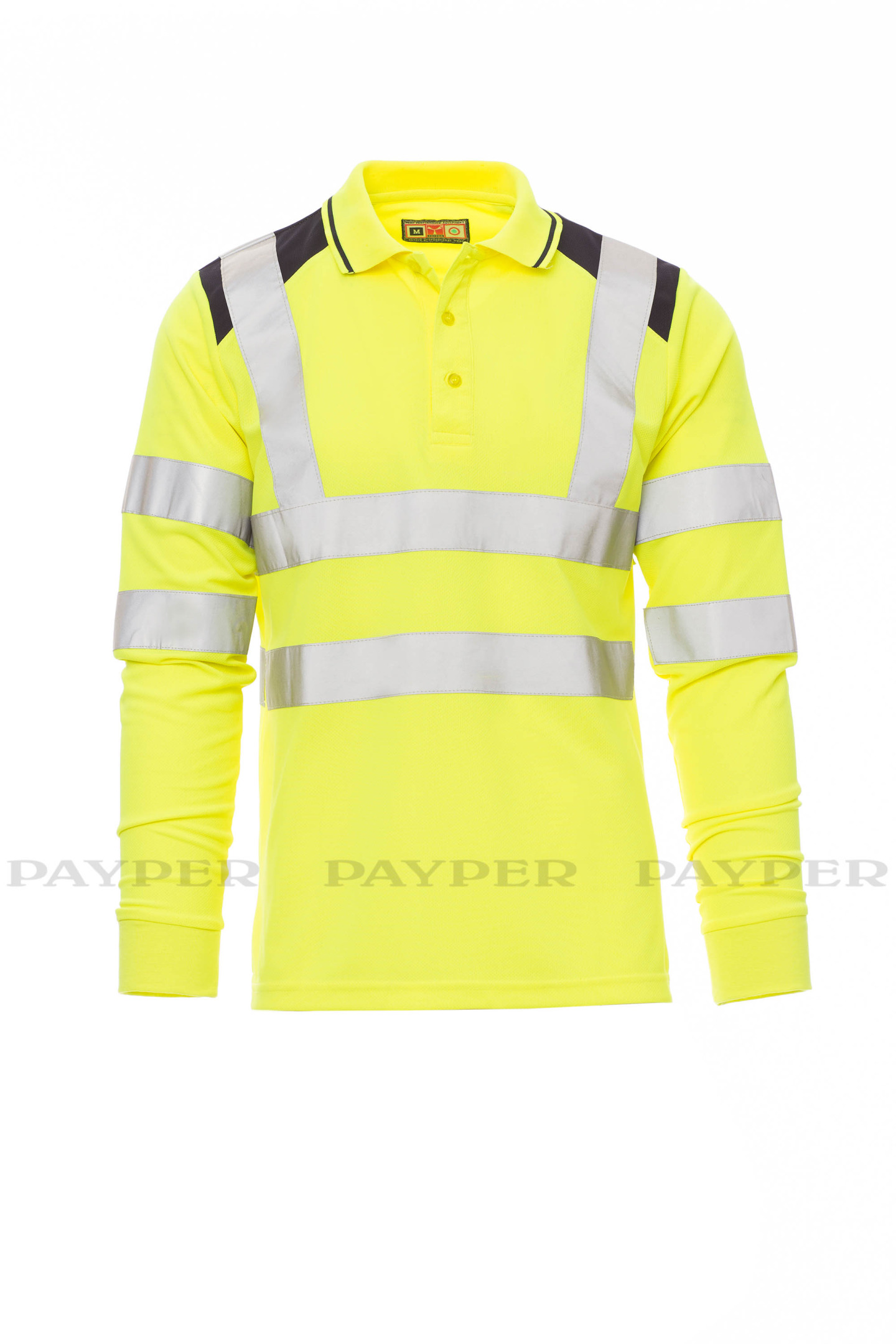 Polo bicolore pour homme à manches longues haute visibilité avec bandes réfléchissantes, 3 boutons assortis effet perlé, col et bordure des manches en bord côtes avec fin profil en contraste, fentes latérales, coutures du col couvertes.