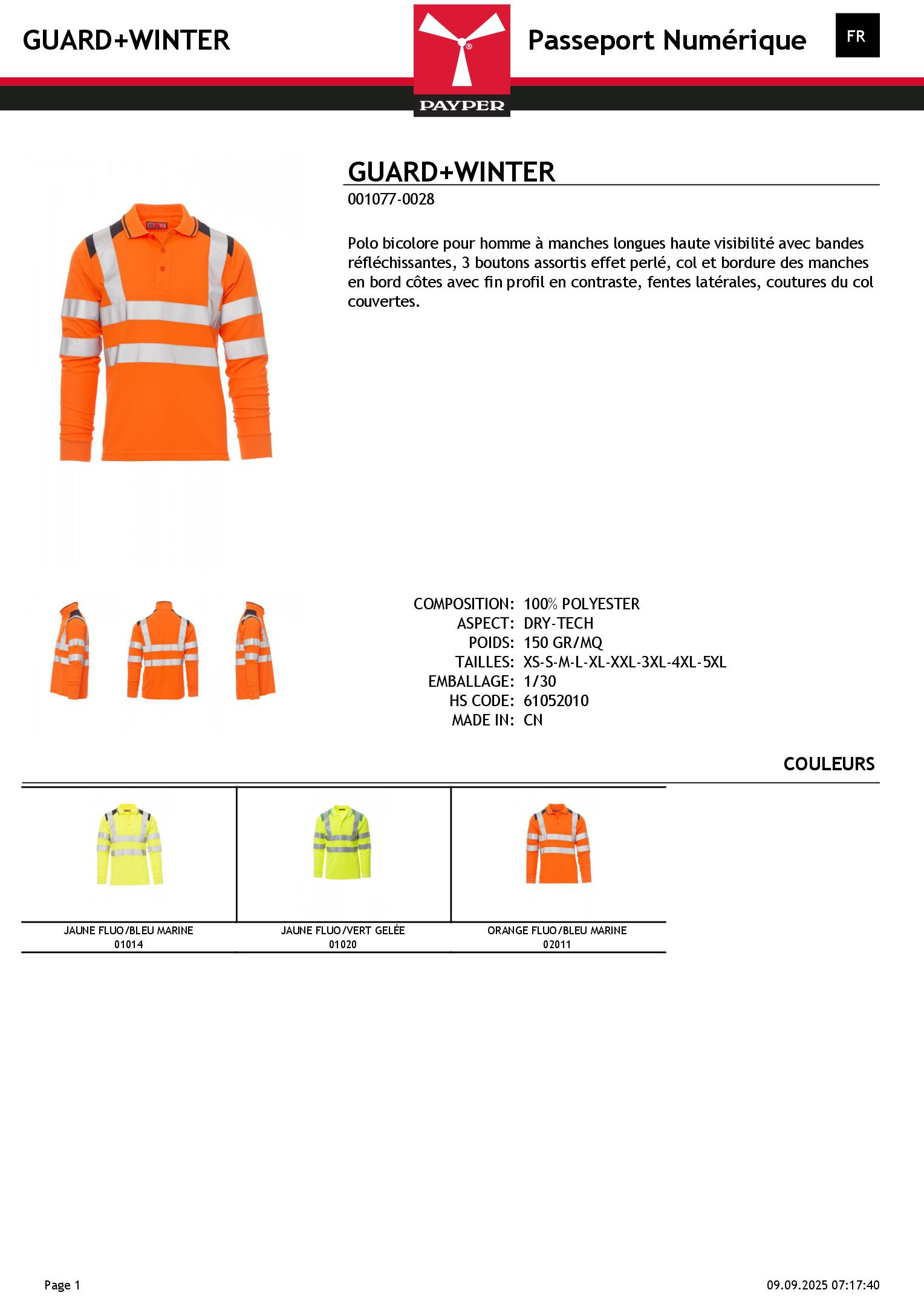 Couleur à définir selon nuancier (voir fiche technique)Taille XS