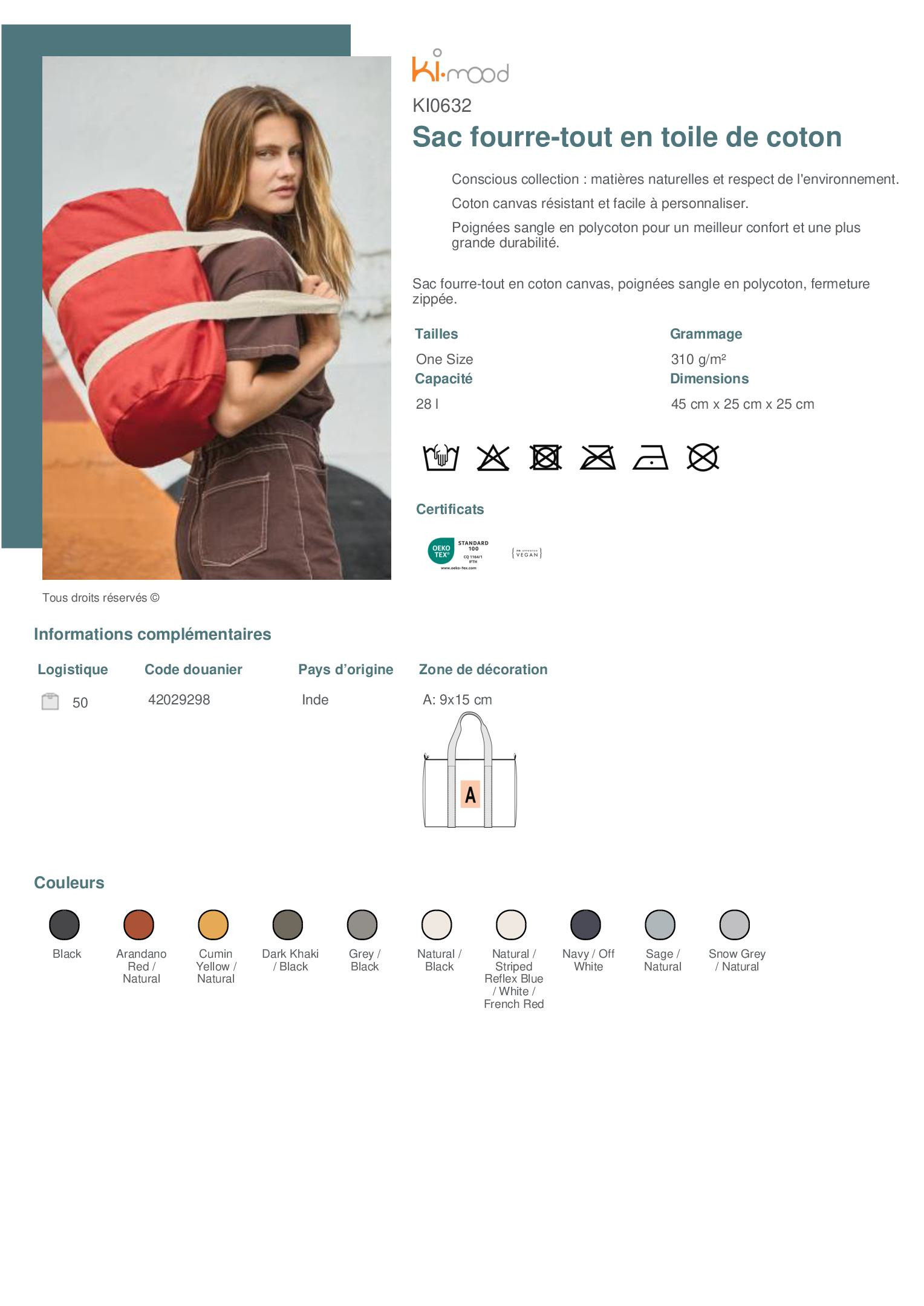 Sac fourre-tout en coton canvas, poignées sangle en polycoton, fermeture zippée.