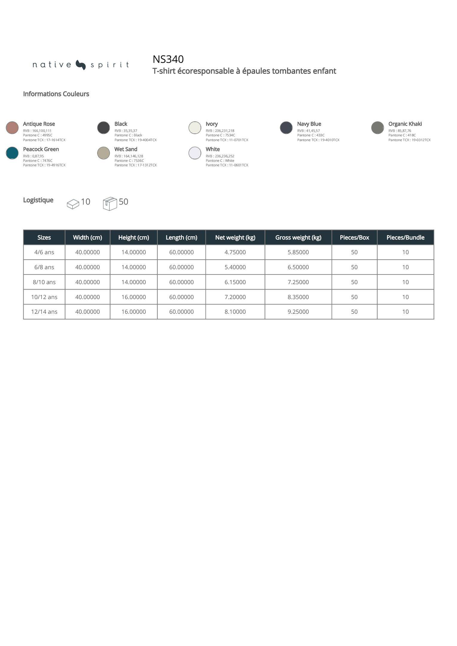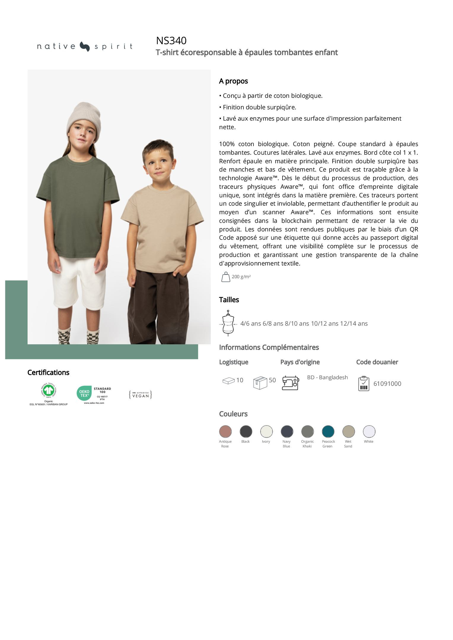 NS340 - T-shirt écoresponsable à épaules tombantes enfant