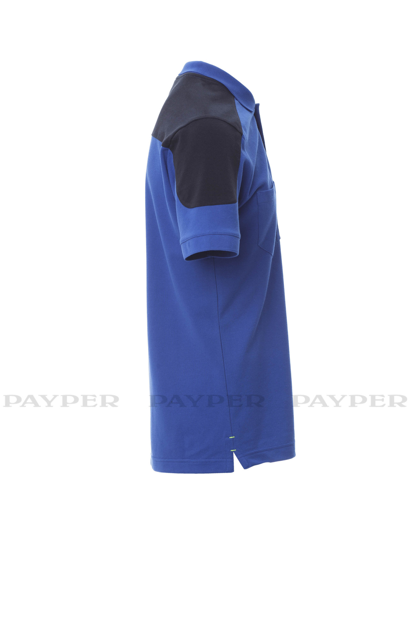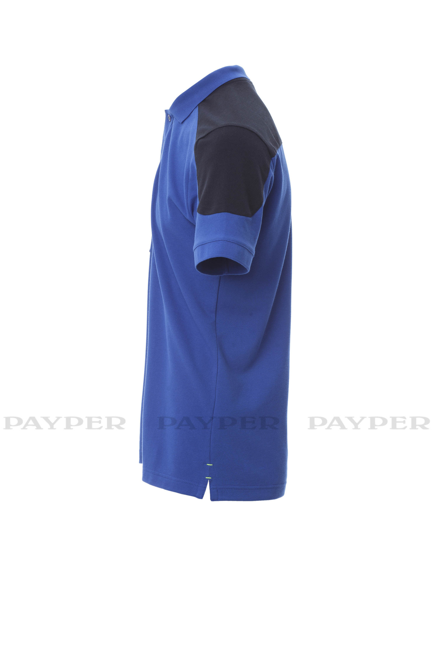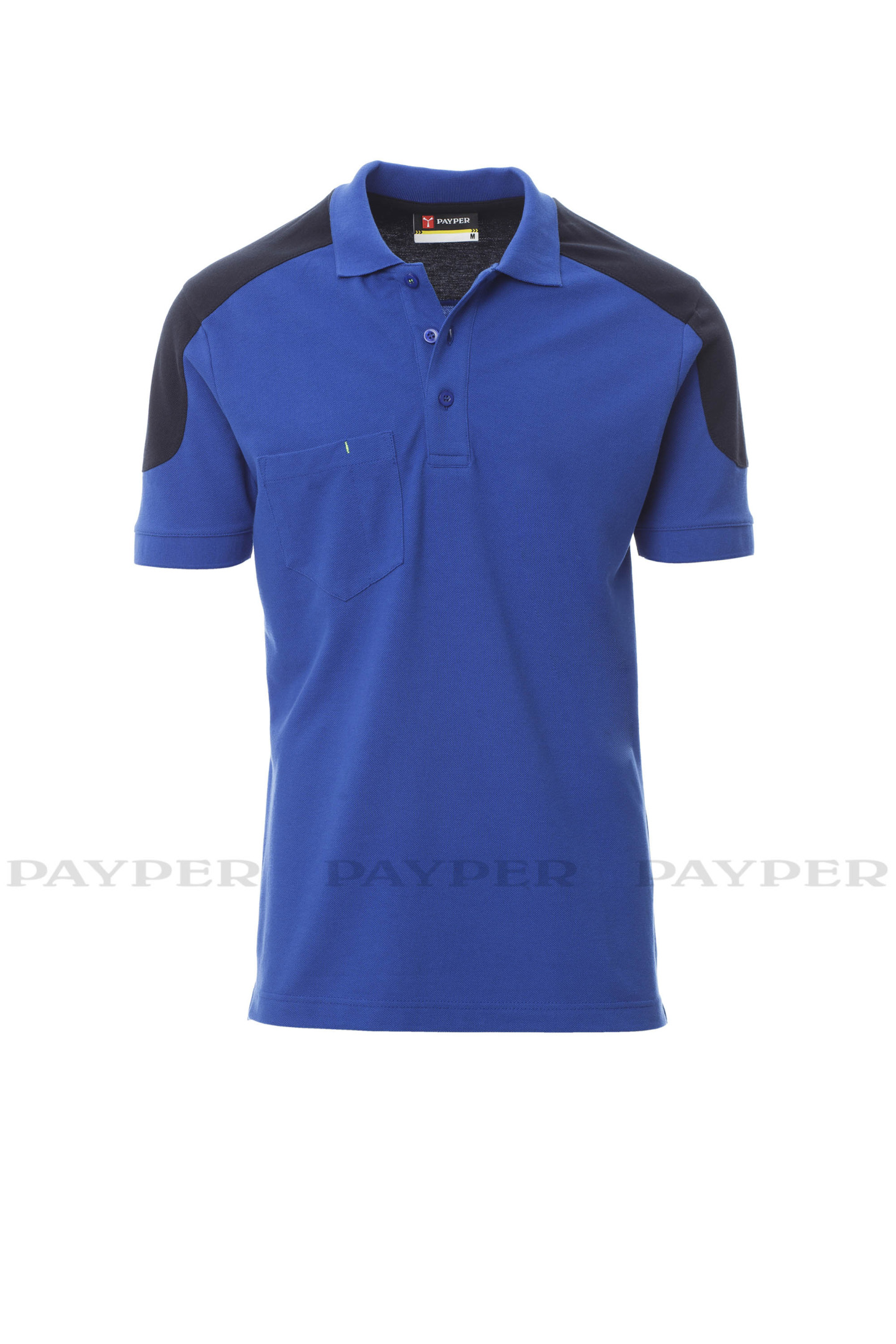 Polo bicolore à manche courte à 3 boutons assortis, petite poche poitrine avec porte-stylo, bordure des manches en bord côtes, fentes latérales, coutures du col couvertes.