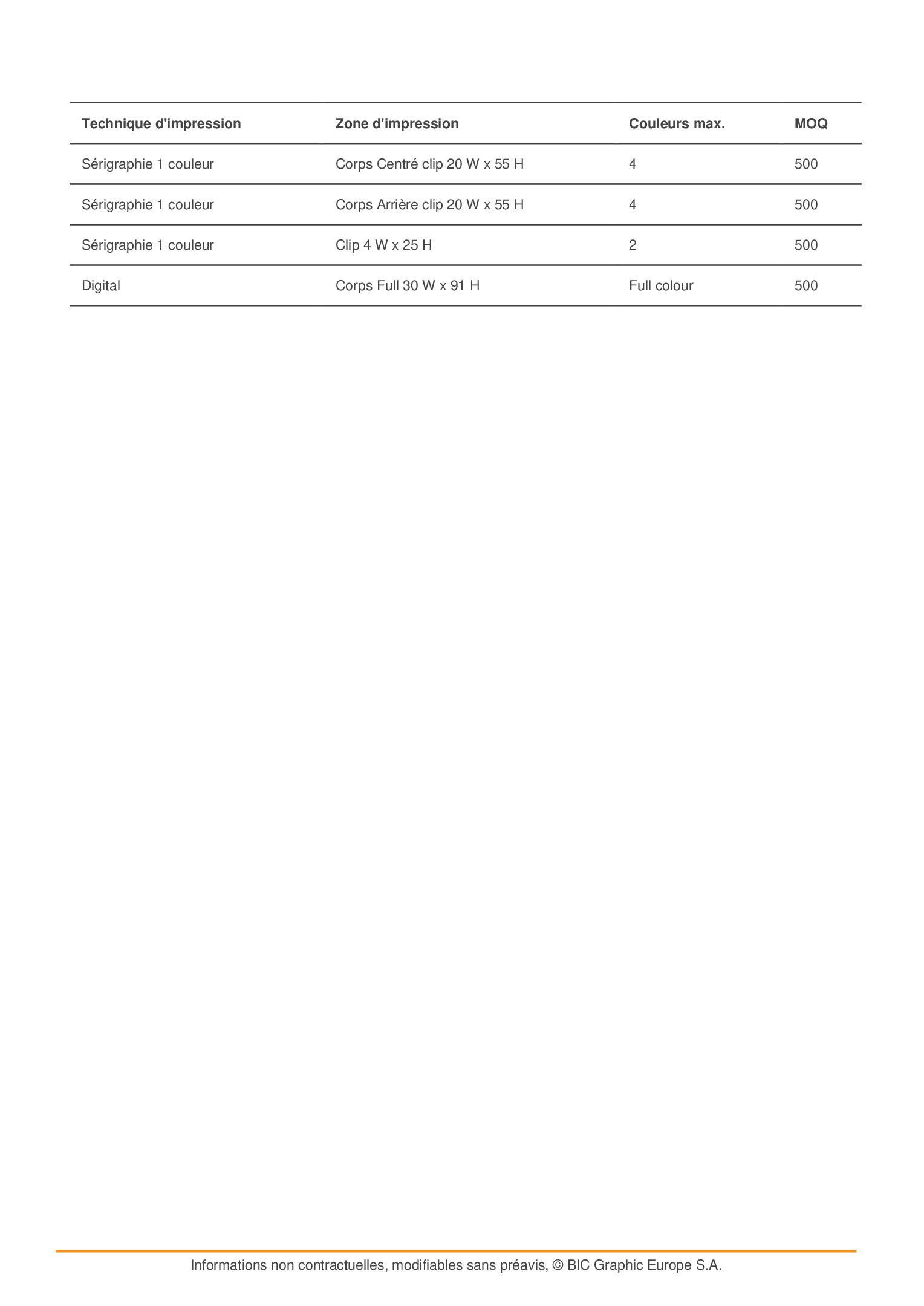 Couleur du corps à définir selon nuancierCouleur du clip à définir selon nuancierCouleur du bouton à définir selon nuancierCouleur de l'encre