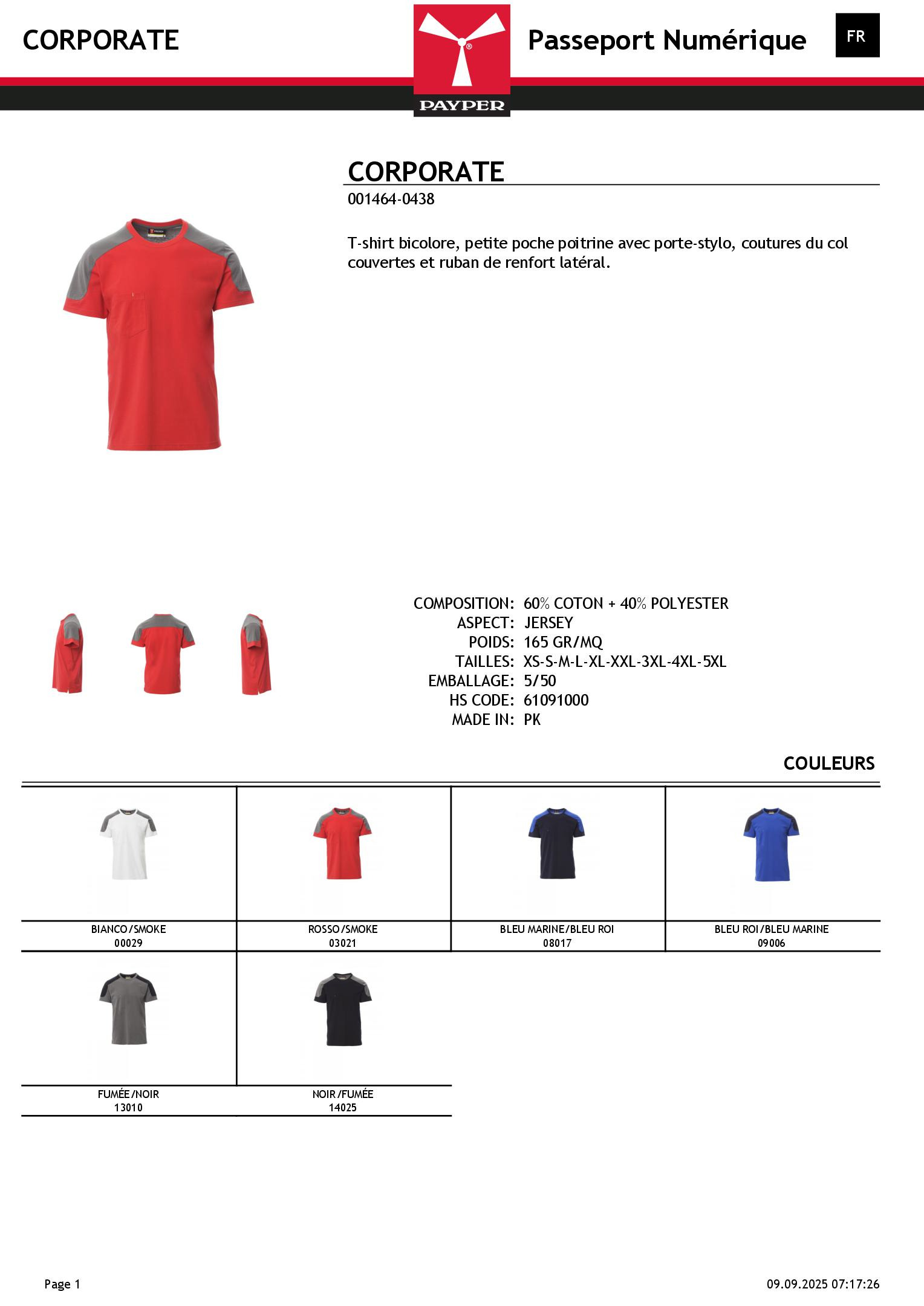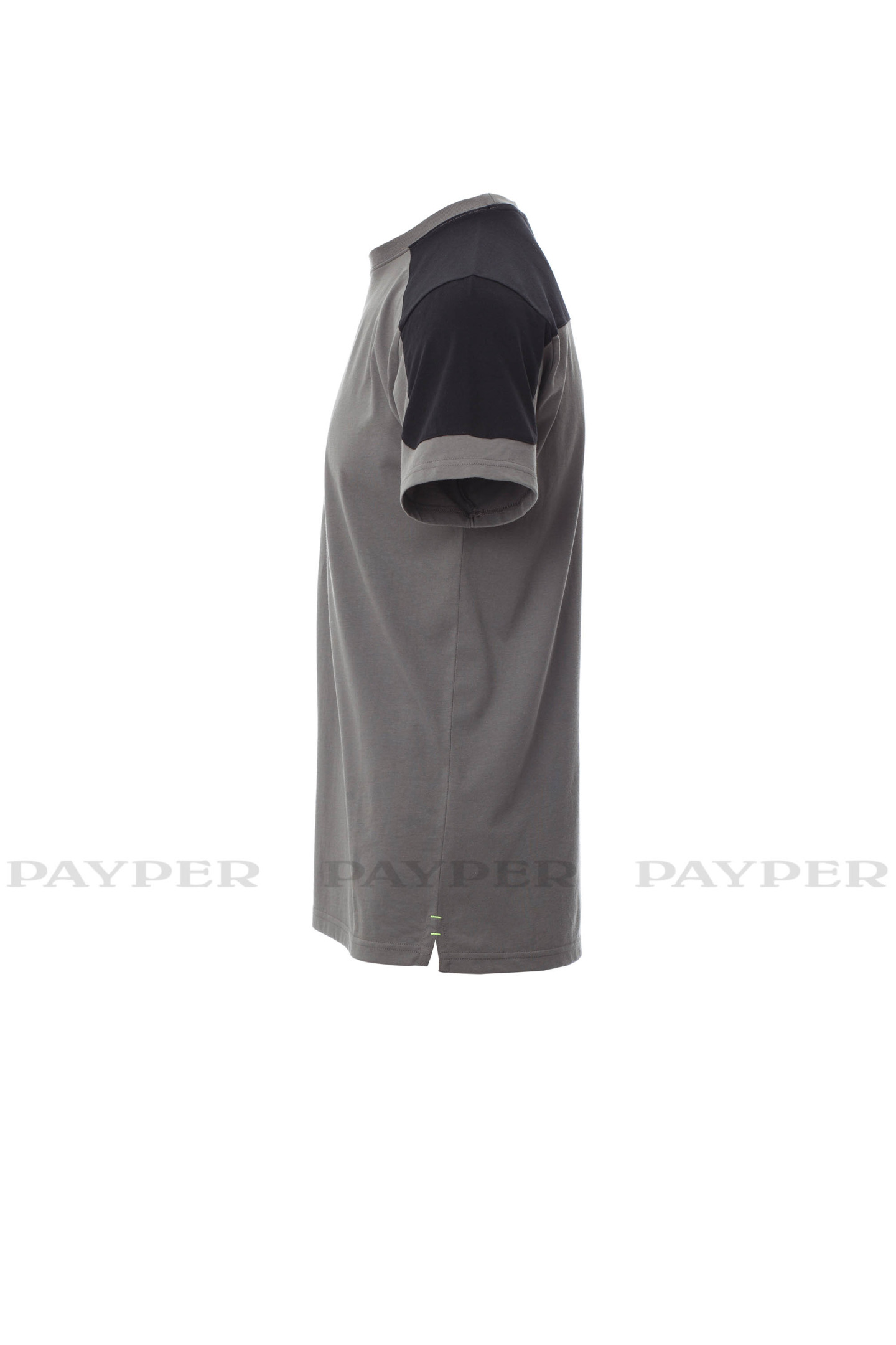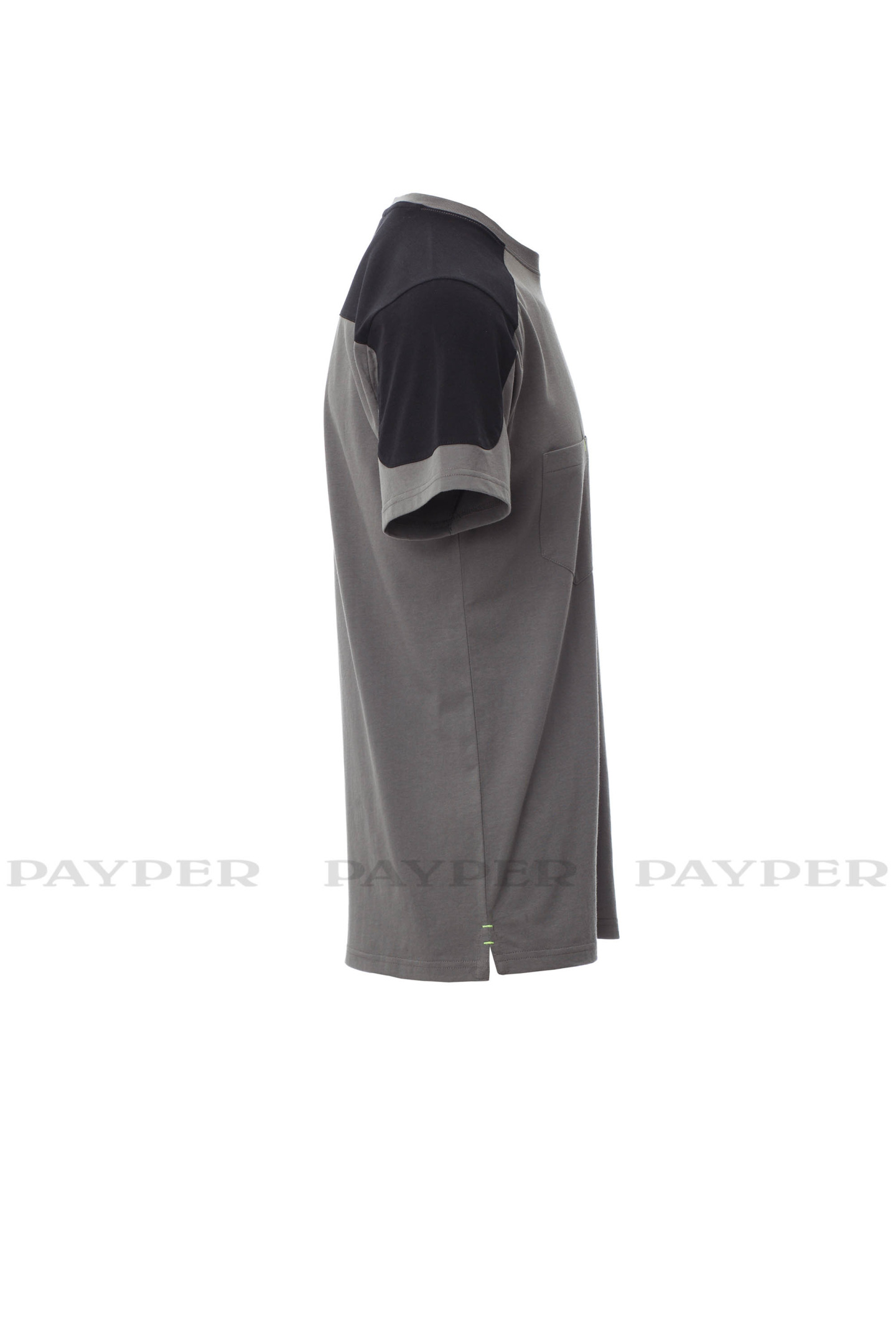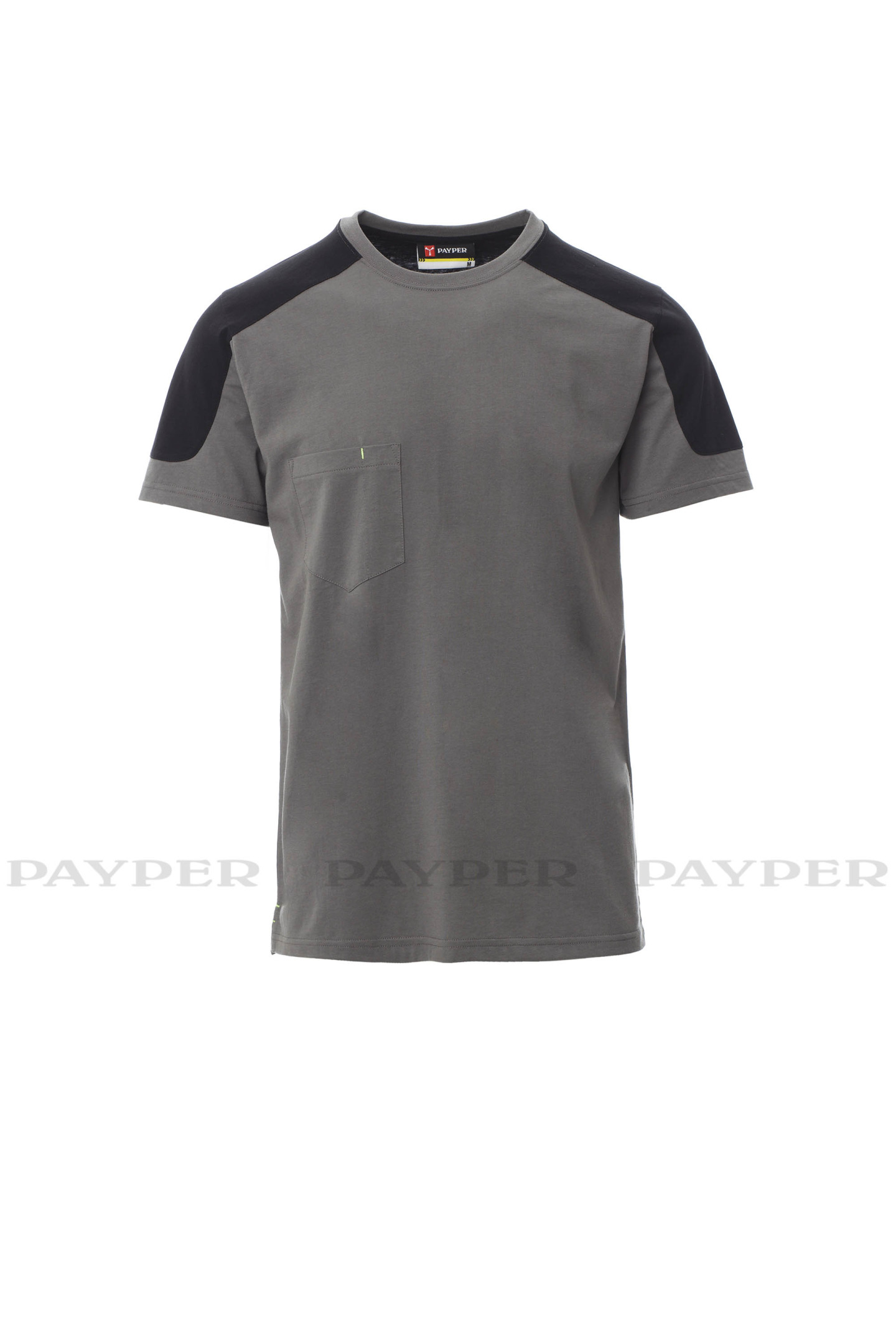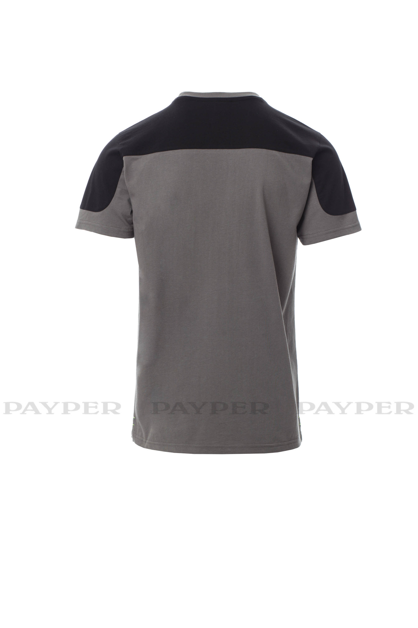 T-shirt bicolore, petite poche poitrine avec porte-stylo, coutures du col couvertes et ruban de renfort latéral.