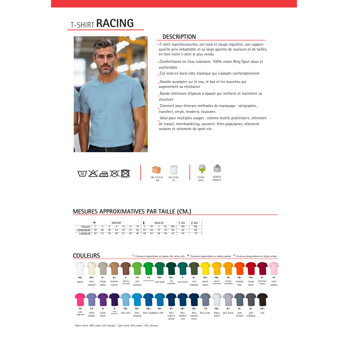 Idéal pour multiples usages : comme textile publicitaire, vêtement de travail, merchandising, souvenir, fêtes populaires, vêtement scolaire et vêtement de sport etc.