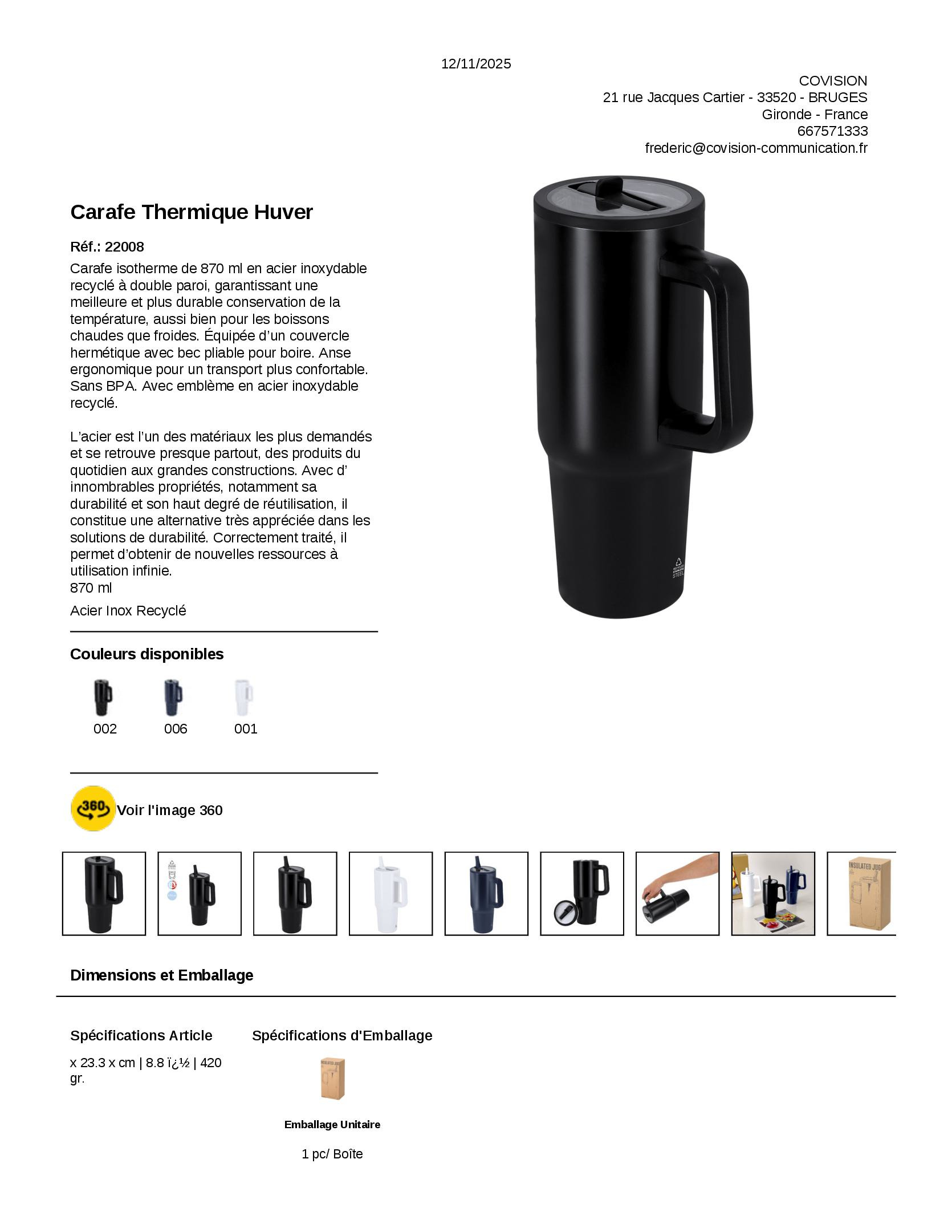 MarquageCouleur à définir selon nuancierPersonnalisation graphiqueCommentaires