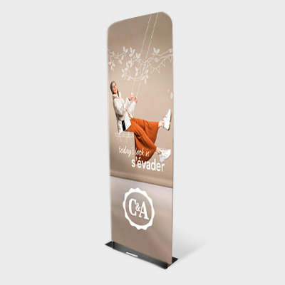 Mettez en valeur votre communication visuelle avec un totem tissu personnalisé, élégant, moderne et facile à transporter
